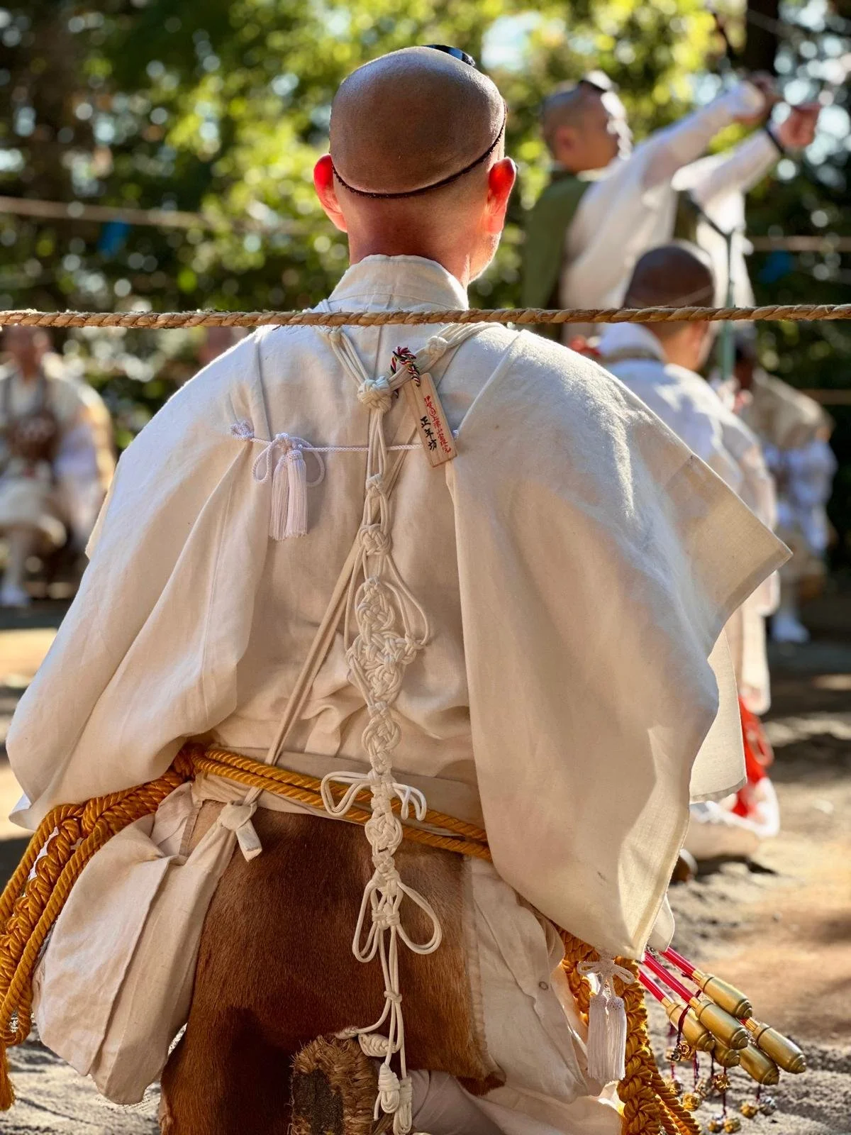 The Yamabushi are practitioners of Shugendo. Today the Yamabushi who performed the ritual were from the Shingon sect. The Shingon practice involves the “sanmitsu yuga” which unifies the practitioners body, speech and mind with Buddha’s Dharmakaya (the truth body). Shugendo is a Japanese spiritual tradition that blends elements of Folk belief along with Shinto, Buddhism, and Taoism. A core belief of the Yamabushi is the importance of living in harmony with nature. They view the mountains as sacred spaces that provide spiritual insight and transformation.